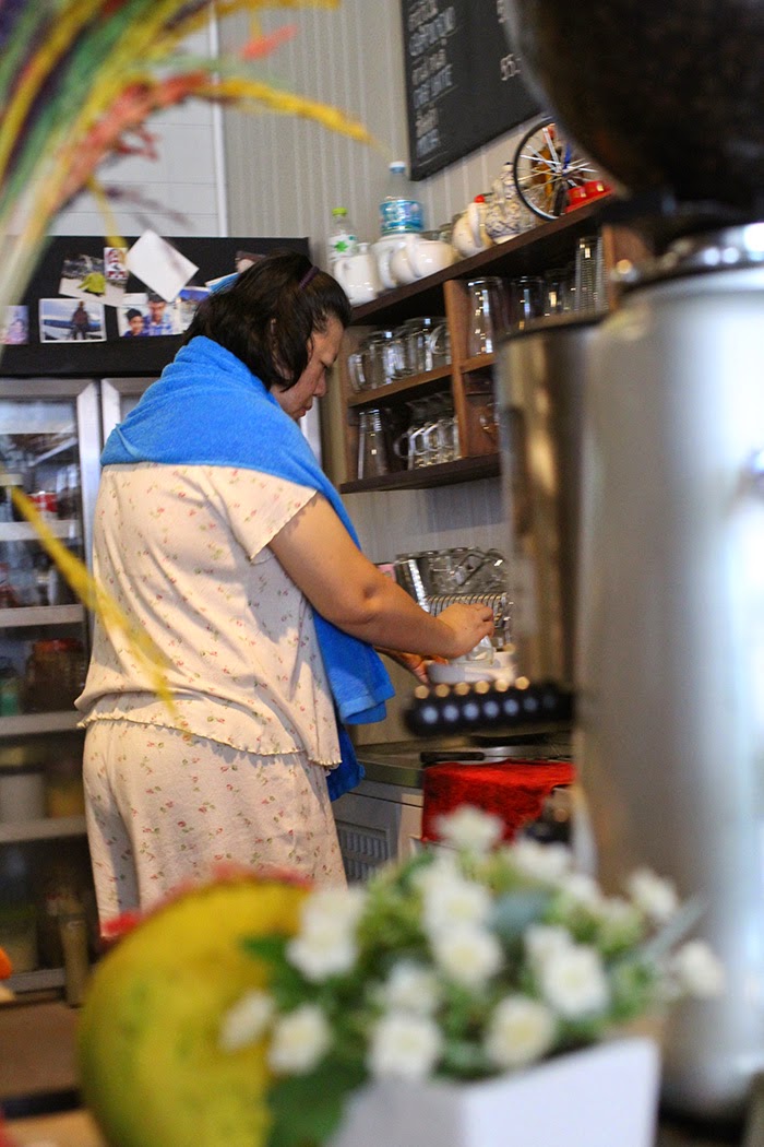 Another restaurant we ate at was a little less on the clean side. We always walked by this stand this old man would wave at us to come in so one morning we decided to just go ahead and eat there.